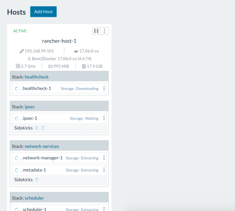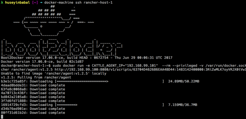 In order to run your containers, services, and stacks on Rancher, you need to enrich your cluster to have stable environment. In order to do that, you need to run some pre-configured script that you can grab on Rancher UI on your host that you have setup before. We will create another machine for rancher host with following command;
