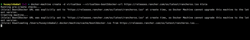docker-machine create -d virtualbox — virtualbox-boot2docker-url https://releases.rancher.com/os/latest/rancheros.iso kloia