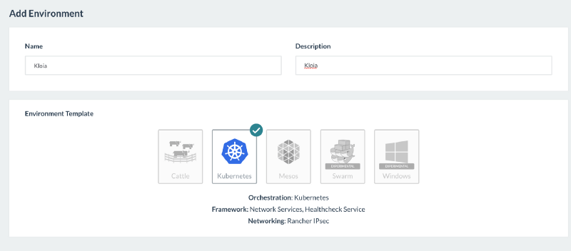 While you are adding your environment, you will be able to select your orchestration tool, we will continue with Kubernetes.