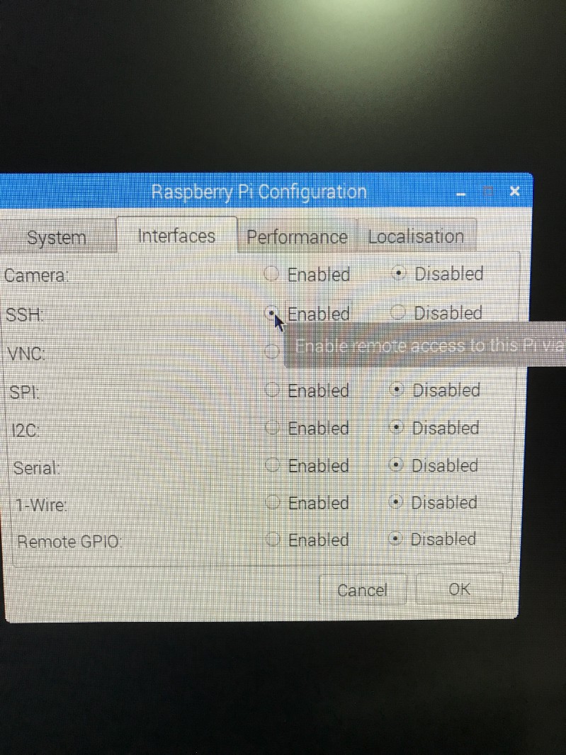 On the screen, click on Interfaces tab then enable SSH.